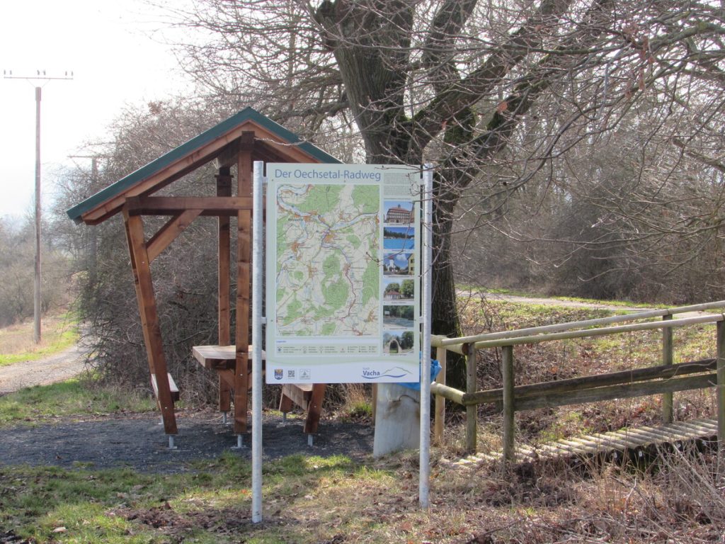 Beschilderung auf dem Werratal-Radweg zwischen Treffurt und Creuzburg